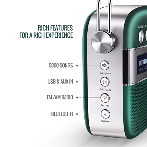 Specification: Saregama Carvaan Premium Hindi – Portable Music Player with 5000 Preloaded Songs, FM/BT/AUX (Emerald Green)